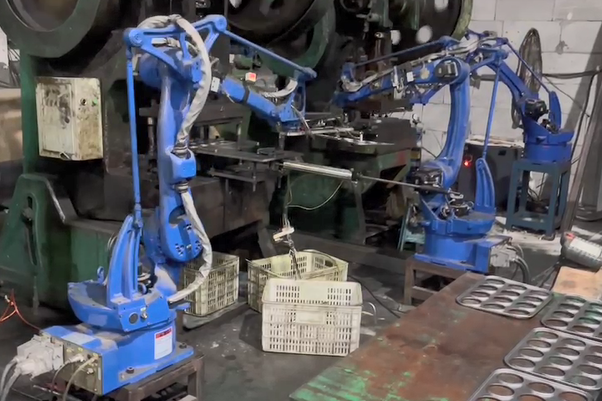 沖壓機(jī)器人是專(zhuān)門(mén)針對(duì)各種沖床與油壓機(jī)配置,高效替代人工沖壓作業(yè)并實(shí)現(xiàn)自動(dòng)上下料的一種多用途工業(yè)機(jī)器人。沖壓機(jī)器人具有靈活垂直升降、水平旋轉(zhuǎn)、水平軸伸縮、工件旋轉(zhuǎn)、工件翻轉(zhuǎn)等多自由度動(dòng)作,并可根據(jù)沖床高度、送料高度、下料高度自動(dòng)適應(yīng),最大程度滿足各種沖壓產(chǎn)品工藝要求,從而實(shí)現(xiàn)無(wú)人化自動(dòng)化智能工廠。沖壓機(jī)器人可以廣泛應(yīng)用于多種批量生產(chǎn)廠家,如金屬鈑金加工沖剪、成形、引伸。還有如交通車(chē)輛、鐘表、家電、文具、手工具、五金、電腦等產(chǎn)品沖壓加工,還可加裝自動(dòng)送料機(jī),從事自動(dòng)移送整條生產(chǎn)線加工。同時(shí)沖壓機(jī)器人可根椐企業(yè)自身實(shí)際需求選擇數(shù)控沖床、氣動(dòng)型精密沖床、三圓導(dǎo)柱高速精密沖床或肘節(jié)式連桿式高精密高速?zèng)_床等配套,各系列沖床設(shè)備在五金自動(dòng)化加工中應(yīng)用廣泛,已被眾多加工企業(yè)所認(rèn)可。