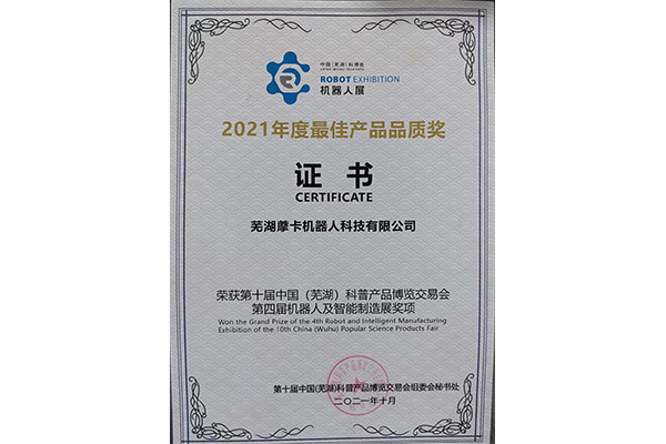 2021年度最佳產(chǎn)品品質(zhì)獎